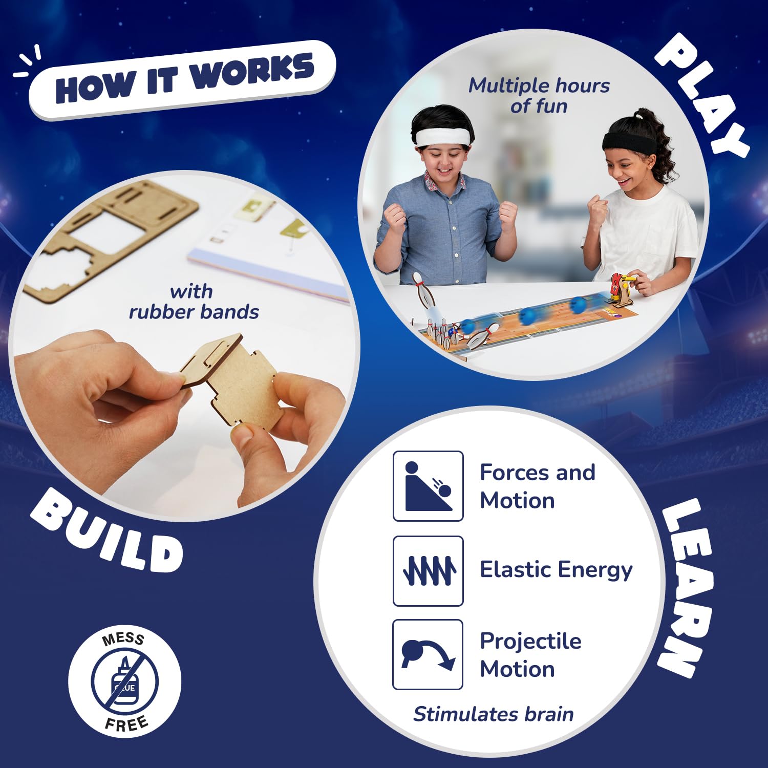About this item ACTION-PACKED FUN TIME: Shoot Kick Bowl win them all with this exciting mechanical machine. Our step-by-step instructional manual ensures a deeply engaging DIY experience, perfect for kids to construct and enjoy for hours. Designed for Boys and Girls for ages, 6,7,8,9,10,11,12,13,14 years old DEVELOPS KEY SKILLS: Reduce screen time and boost confidence and creativity with 100% screen-free engagement. As kids build their own toys, they learn about the science around us, developing a lifelong love for science. FREE PARTS LIFETIME: Enjoy hassle free fun with all parts included, plus a lifetime supply of replacement parts. Easy-to-follow instructions make building a breeze, ensuring uninterrupted playtime. MADE FROM SUSTAINABLE WOOD: Made from the highest quality engineered wood, our toys are completely safe for kids and boast long-lasting durability. ULTIMATE GIFT: Give the gift of entertainment and learning combined. Ideal for birthdays gifts for boys and girls, this makes for a thoughtful present that providing endless hours of enjoyment and learning for kids LOVED BY KIDS AND PARENTS WORLDWIDE: Trusted by families in 33+ countries, our toys have received multiple accolades, including STEM org approval, the 2022 Innovative Toy of the Year in the Netherlands, and TOTY 2022 Finalist. Join a global community celebrating STEM education through play.