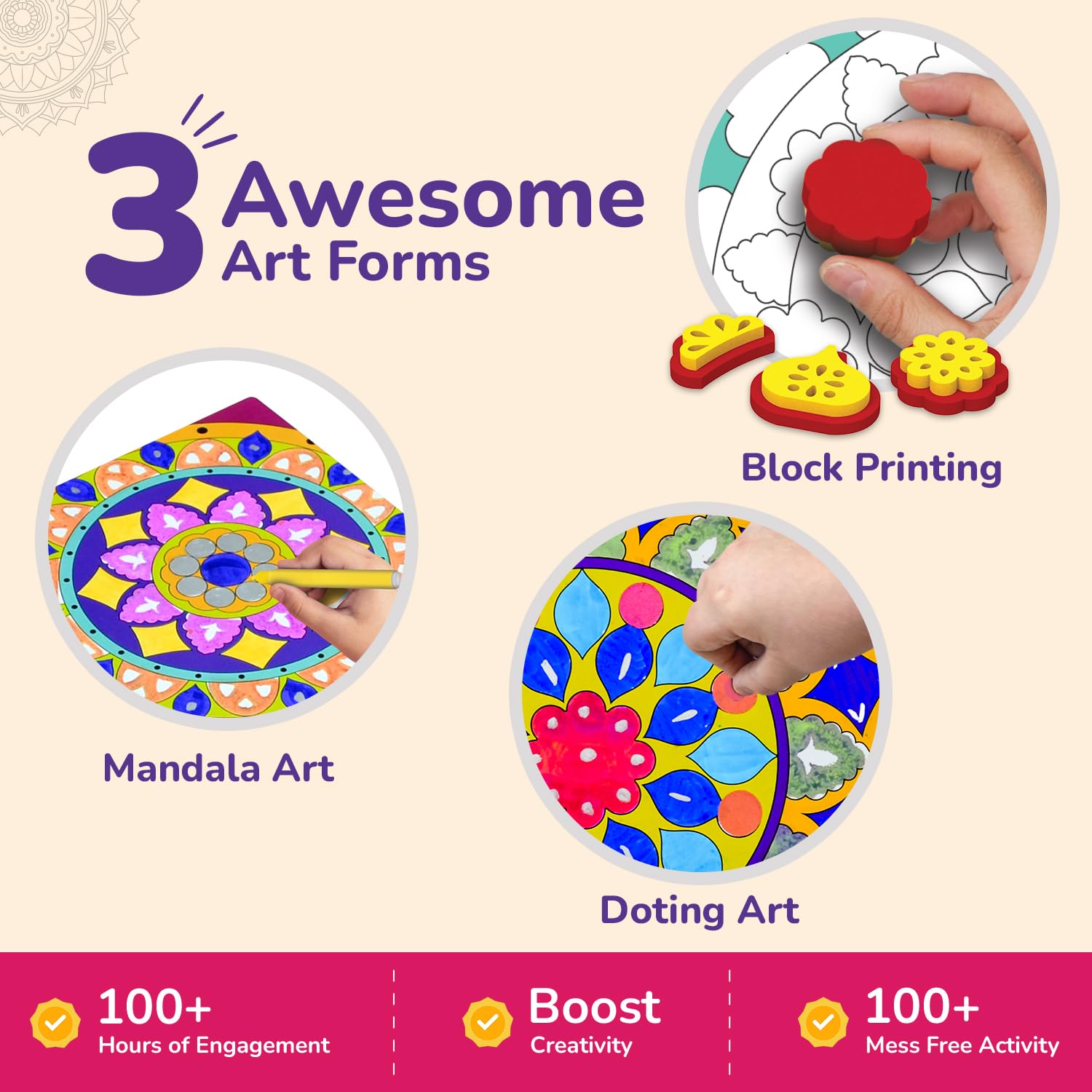 About this item ?? Versatile Art and Craft Kit for Ages 5-8: Tailored for children aged 5, 6, 7, and 8, this Smartivity Mandala Kit is a perfect mix of fun and educational content. It introduces young minds to the joyous world of art in an engaging manner. ?? Comprehensive Set for Creative Exploration: Included in the kit are 12 beautifully designed mandala sheets and 6 colorful sketch pens, providing a vast canvas for artistic expression. Ideal for enhancing fine motor skills and sparking creativity in kids. ?? Multi-Activity Fun: Offering more than just coloring, this kit includes activities like dot art and stamping. Each activity is thoughtfully designed to nurture the artistic skills of both boys and girls, making it a versatile educational tool. ??? DIY Craft Projects: Encourage your child’s DIY flair with projects to create friendship bands, spinners, greeting cards, and bookmarks. This hands-on experience not only entertains but also educates, perfectly embodying STEM educational principles. ?? Perfect Gift for Young Artists: Ideal for birthdays, holidays, or special occasions, this Mandala Kit is a thoughtful and educational gift for kids. It’s a delightful and instructive present that keeps children engaged in learning through play. ?? Encouraging Learning Through Play: As a fun and educational game, this kit aligns with STEM learning objectives. It’s designed to promote cognitive development, creativity, and hand-eye coordination, making it a valuable tool for growth and education.